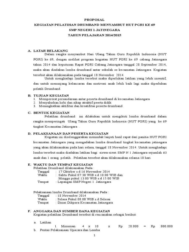 Proposal dana pengajuan futsal PROPOSAL`PERMOHONAN BANTUAN DANA UNTUK MENGIKUTI TURNAMEN FUTSAL 2016 A. LATAR Proposal Permohonan Dana Mengikuti Lomba Sepak Bola Proposal Permohonan Dana Mengikuti Lomba Sepak Bola.pdf DOWNLOAD HERE... Proposal pengajuan dana. Gebyar pbb prajurit djawara. Beranjak dari itu,kami tentunya mengharapkan partisipasi para siswa untuk mengikuti lomba baris-berbaris dan dari kegiatan ini diharapakan dapat meningkatkan kedisiplinan, patriotisme serta tanggung jawab yang tinggi. Proposal Paskibra PROPOSAL PENGAJUAN KOSTUM LOMBA DAN LOMBA PERATURAN BARIS BERBARIS ( LPBB ) ... Jadwal Kegiatan Tahunan Paskibra SMKN 1 Cikarang Selatan ... Anggaran Dana Anggaran Dana Terlampir 6.d Selesai : Plaza Pemda Kabupaten Bekasi 5.3. ... Proposal Pengajuan Dana Kegiatan Lomba. A. latar belakang. Pembinaan dan pengembangan regenerasi dari suatu organisasi (Ekstrakulikuler) sangatlah penting untuk dilaksanakan sebagaimana mestinya dengan acuan dan tujuan yang hendak dicapai peserta didik yang juga merupakan generasi...