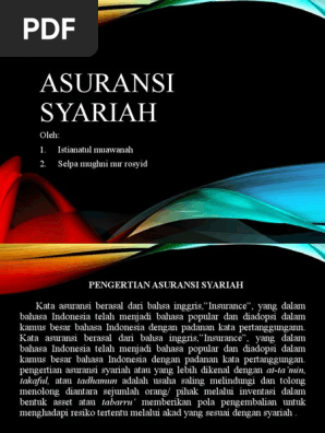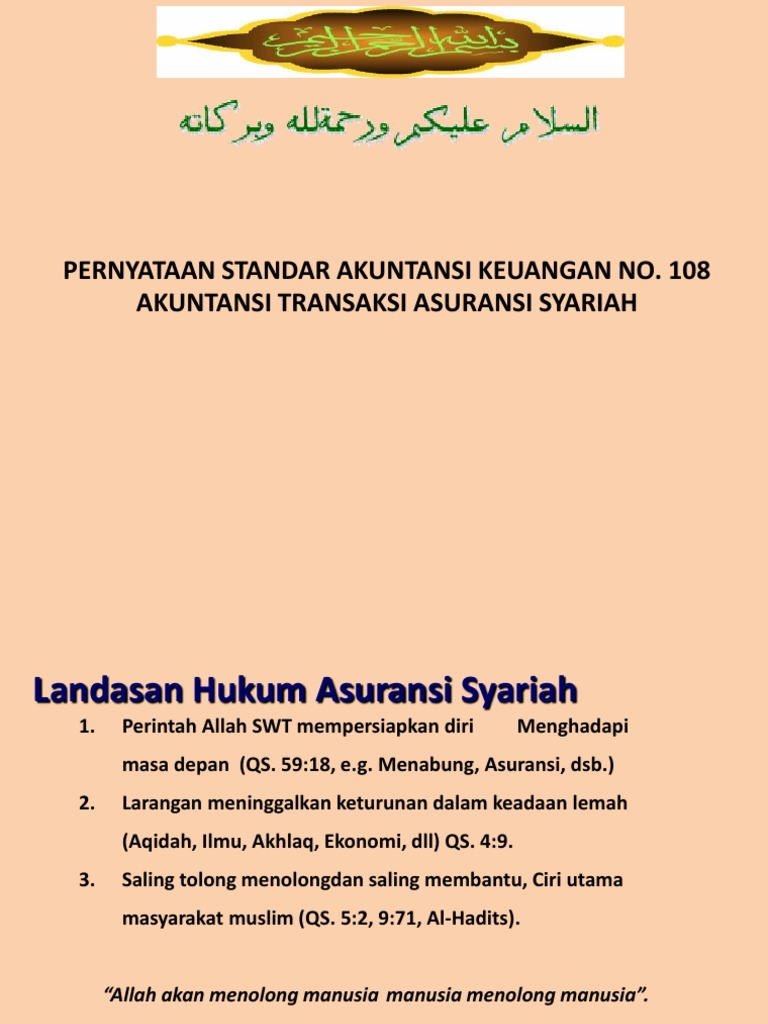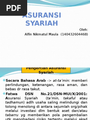 Pandangan Ulama Mengenai Asuransi Syariah. Ilustrasi. TUJUAN asuransi sangatlah mulia, karena bertujuan untuk tolong-menolong dalam kebaikan. Namun persoalan yang dipertikaikan lebih lanjut oleh para ulama adalah bagaimana instrumen yang akan mewujudkan niat baik dari asuransi tersebut; baik itu bentuk akad yang melandasinya, sistem pengelolaan ... Posting pada Ekonomi Ditag apa tujuan dan pentingnya asuransi bagi kita, apakah tujuan bank syariah, apakah yang dimaksud asuransi syariah, asuransi dan pertanggungan, asuransi pdf, bab 2 pengertian asuransi, bagaimana pihak asuransi meminimalisir resiko, bagaimanakah pengaturan asuransi, berikut ini jenis-jenis asuransi kecuali, buku tentang ...
