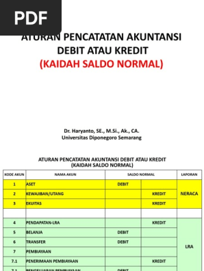 Analisa bukti transaksi merupakan salah satu cara yang penting dalam rangkaian siklus terjadinya proses akuntansi. dalam proses akuntansi, semua dituntut untuk bekerja dengan tepat, benar, dan harus dicatat sesuai dengan posisinya, apakah pada bagian debit atau kredit . • tenggat waktu (apabila transaksi dilakukan dengan kredit) 6. bukti kas ... Apa Itu Auto Debit? Autodebet adalah suatu sistem pembayaran yang mana saldo rekening bank Anda nantinya akan berkurang secara otomatis oleh pihak merchant atau bank karena Anda mempunyai transaksi finansial tertentu.. Transaksi finansial ini bisa berbentuk pembayaran kartu kredit, pinjaman dari pihak bank atau fintech, autodebet ke BPJS, dan berbagai jenis tagihan yang lainnya. Penjelasan tabel debit kredit: Kolom #1 adalah nama-nama rekening utama dalam laporan keuangan, yaitu Aset, Liabilitas, Modal, Pendapatan, dan Biaya atau Beban. Kolom #2 berisi prosedur pencatatan debit kredit atas pengaruh suatu transaksi terhadap account/rekening perkiraan. Balance Date Description Debit Credit Debit Des 1 Saldo 3,000,000 2013 31 Cash Payment Journal 3,350,000 6,350,000. Petty Cash 3,350,000 3,000,000 ...