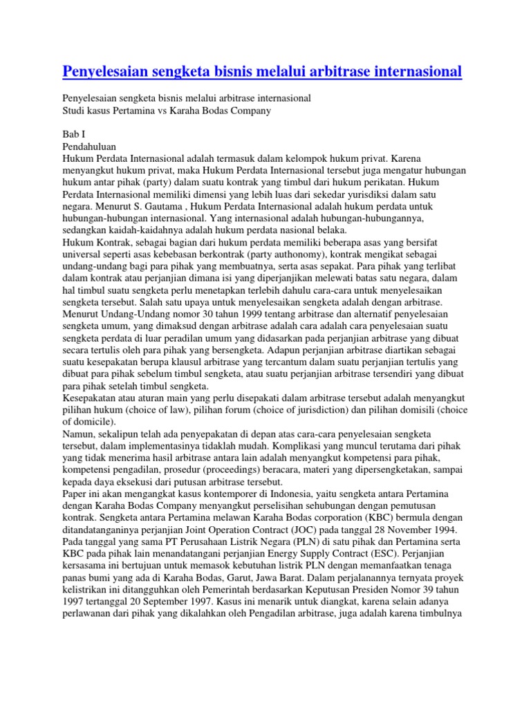 Contoh kasus penyelesaian sengketa bisnis melalui mediasi. Pengertian Arbitase Arbitrase adalah praktik untuk menerima keuntungan dari perbedaan dan yang terjadi di masa dua pasar keuangan. Arbitrase ini merupakan suatu koalisi penyesuaian transaksi atas 2 pasar keuangan di […] Namun, pada pokok penyelesaian sengketa bisnis dengan negosiasi tidak harus melalui pihak ketiga. Penyelesaian sengketa dengan cara arbitrase juga memiliki kelemahan yaitu hanya untuk pelaku usaha yang besar ( bona fide ), ketergantungan pada kemampuan arbiter, tidak adanya preseden putusan terdahulu dan masalah pelaksanaan putusan arbitrase asing. Pengertian Sengketa Internasional, Menurut Para Ahli, Penyebab, Penyelesaian, Jenis Kasus dan Contoh adalah suatu perselisihan antara subjek-subjek hukum internasional mengenai fakta, hukum atau politik dimana tuntutan atau pernyataan satu pihak ditolak, dituntut balik atau diingkari oleh pihak lainnya. Mediasi; Mediasi adalah cara penyelesaian sengketa antara dua pihak atau lebih dengan efek nyata. Biasanya, pihak ketiga, mediator, membantu para pihak untuk bernegosiasi penyelesaian. Bersengketa dapat menengahi perselisihan dalam berbagai domain, seperti komersial, hukum, diplomatik, hal kerja, masyarakat, dan keluarga.