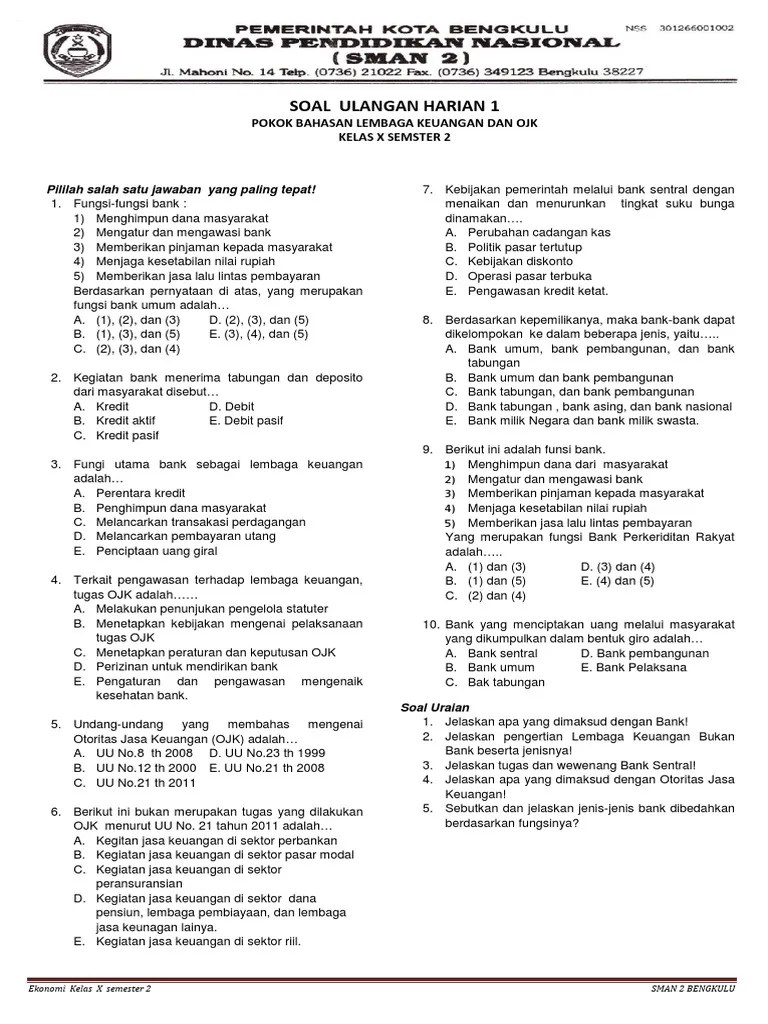 View latihan soal pts.docx from econ 101 at don bosco prep high school. Soal pilihan ganda bank, lkbb, dan ojk 1. Soal pilihan ganda mata pelajaran ekonomi kelas x bab 5 lembaga jasa keuangan dalam perekonomian lengkap. Soal pilihan ganda bank, lkbb, dan ojk 1.