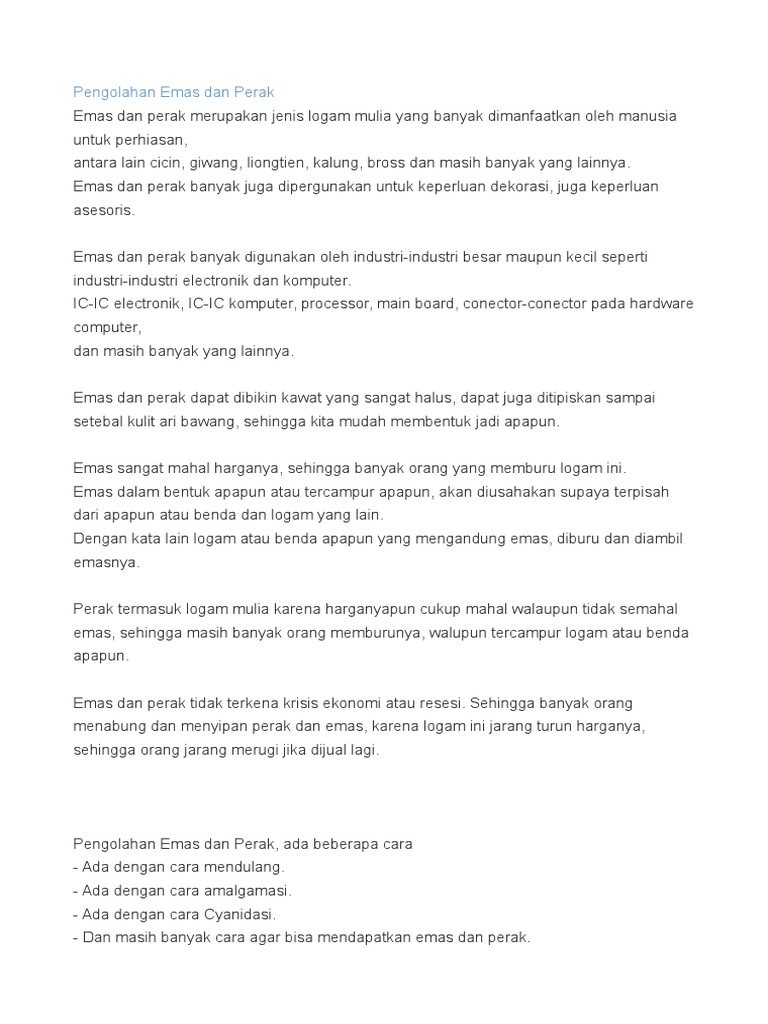 Pengolahan Emas Dan Perak Seta Senyawa2 Kimianya Pdf