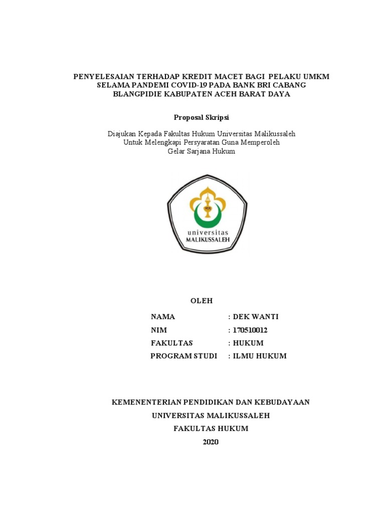 Cara penyelesaian kredit macet bank bri. Di Financer.com, Anda akan mendapatkan banyak informasi tentang penyedia layanan kartu kredit, mulai dari jenis kredit, cara membuat kartu kredit, cara penyelesaian kredit macet, serta beberapa jasa bank penerbit kartu kredit terbaik dan terpercaya, tentunya. Ini Langkah-Langkah yang Dilakukan Bank Terhadap Kredit Macet 3 menit membaca Oleh Sindhi Aderianti pada September 26, 2018. Kredit Anda macet? Jangan biarkan hal ini terjadi. Kredit Macet atau non performing loan (NPL) adalah istilah kegagalan nasabah dalam membayar pinjaman.. Riwayat gagal bayar tersebut akan tercatat dalam sistem dan membuat nasabah sulit mendapatkan pinjaman di kemudian hari. DAN MEMENUHI SYARAT - SYARAT UNTUK. MENCAPAI GELAR SARJANA HUKUM. O L E H i. EVY M ARTHA ELVIERA 0 3 8 8 3 2 6 5 9. DOSEN PEMBIMBING. Prof. Or ft. Baca Juga: Cara Melihat dan Membersihkan BI Checking agar Pengajuan Kredit Lolos 2. Bank Memberikan Persyaratan Ulang. Ilustrasi bunga kredit. Apa yang dilakukan bank berikutnya untuk menyelamatkan Anda dari kredit macet adalah reconditioning atau persyaratan ulang. Berbeda dengan tahap sebelumnya, pada tahap reconditioning ini pihak bank tidak hanya sekadar mengubah jangka pembayaran tagihan.