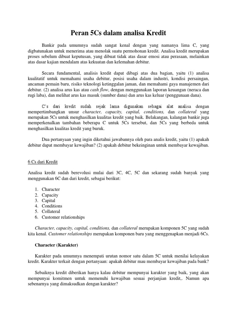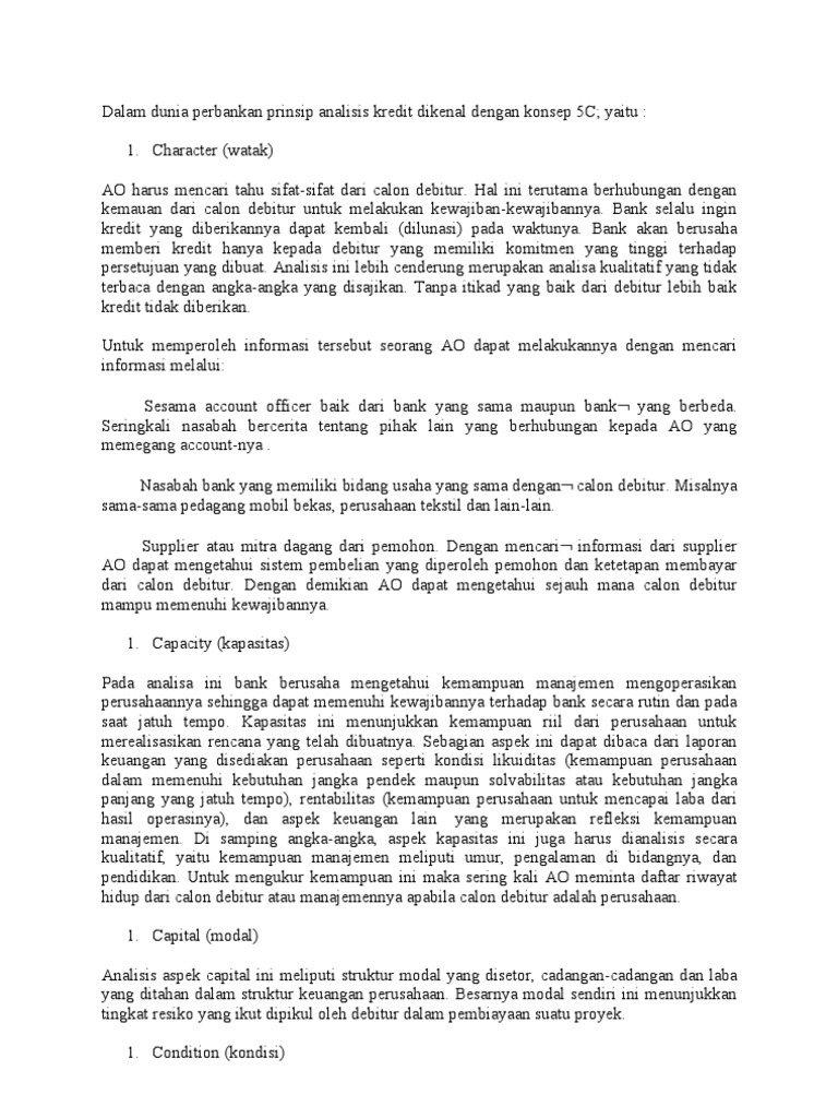 Contoh analisa kredit 5c.