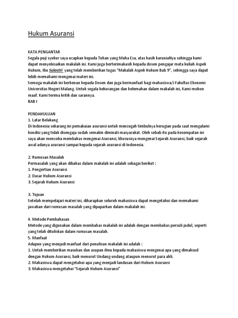 5 Dasar Hukum Asuransi di Indonesia. Berkembangnya perusahaan asuransi tak lepas dari meningkatnya meleknya pengetahuan masyarakat akan pentingnya asuransi yang sebenarnya. Pendidikan dan teknologi menjadi faktor penting tumbuhnya kebutuhan masyarakat akan asuransi, dapat kita lihat fenomena yang terjadi saat ini bahwa mayoritas orang yang ...