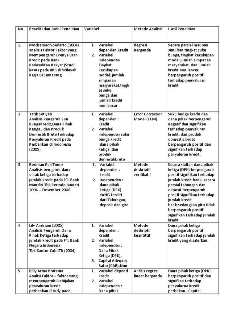 PDF Pengaruh kredit macet dan penyaluran kredit Penyaluran dana yang dilakukan oleh bank dilakukan melalui pemberian pinjaman yang dalam masyarakat lebih dikenal dengan nama kredit. Risiko kredit Likuiditas Profitabilitas. 5. Saputra dkk (2014) Pengaruh Dana DPK, Pihak Ketiga Penyaluran.