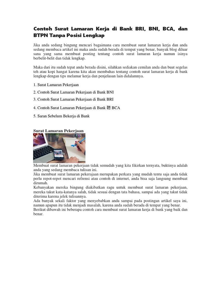 42 contoh surat lamaran kerja bank bca