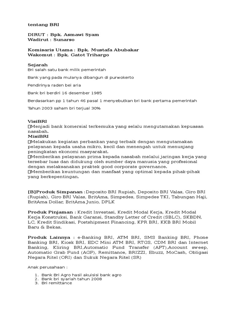Deposito bank bri syariah. Bank Syariah Indonesia Laporan Tahunan PT Bank BRI Syariah 2020. Ukuran file: 6,11MB. Unduh PDF Lihat Flipbook. Kantor Pusat Gedung The Tower, Jl. Gatot Subroto No. 27 Kelurahan Karet Semanggi, Kecamatan Setiabudi, Jakarta Selatan 12930 MEDIA SOSIAL. Bank Syariah Indonesia. Bank Syariah Indonesia ... Profil dan Produk Bank BRI Syariah - SyariahBank.com Setelah sebelumnya membahas mengenai Bank Muamalat dan Bank BNI Syariah sebagai salah satu bank syariah di Indonesia, kali ini saya akan berbagi informasi mengenai Bank BRI Syariah. Siapa yang tidak pernah mendengar Bank BRI. Hampir semua masyarakat Indonesia mengenal salah satu Bank BUMN terbesar di Indonesia ini, dan tentunya ada di hampir seluruh pelosok di Indonesia. Deposito BSI Syariah: Syarat, Simulasi Dan Keuntungan ... Deposito BSI Syariah: Syarat, Simulasi Dan Keuntungan Terbaru 2022. Deposito BSI Syariah memiliki banyak keuntungan dan fasilitas, Namun sebelum mengikuti layanan tersebut wajib banget mengetahui info dasar dari sistem deposito yang ditawarkan oleh bank bsi. Banyak orang yang masih belum mengetahui tentang apa itu deposito secara syariah. Inilah Keuntungan dan Kerugian dari Deposito Syariah Sistem Bagi Hasil dalam Deposito Syariah berdasarkan fatwa DSN Dewan Syariah Nasional) MUI (Majelis Ulama Indonesia) No: 03/DSN-MUI/IV/2000. Sehingga hasil dari bagi hasil atau pendapatan yang akan diterima nasabah tidak tetap (fluktuasi) sesuai dengan tingkat pendapatan bank syariah berbeda dengan bunga yang ada pada Deposito Konvensional.