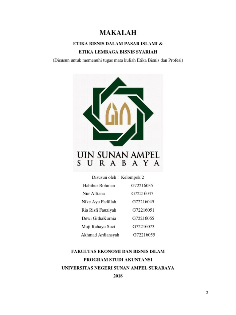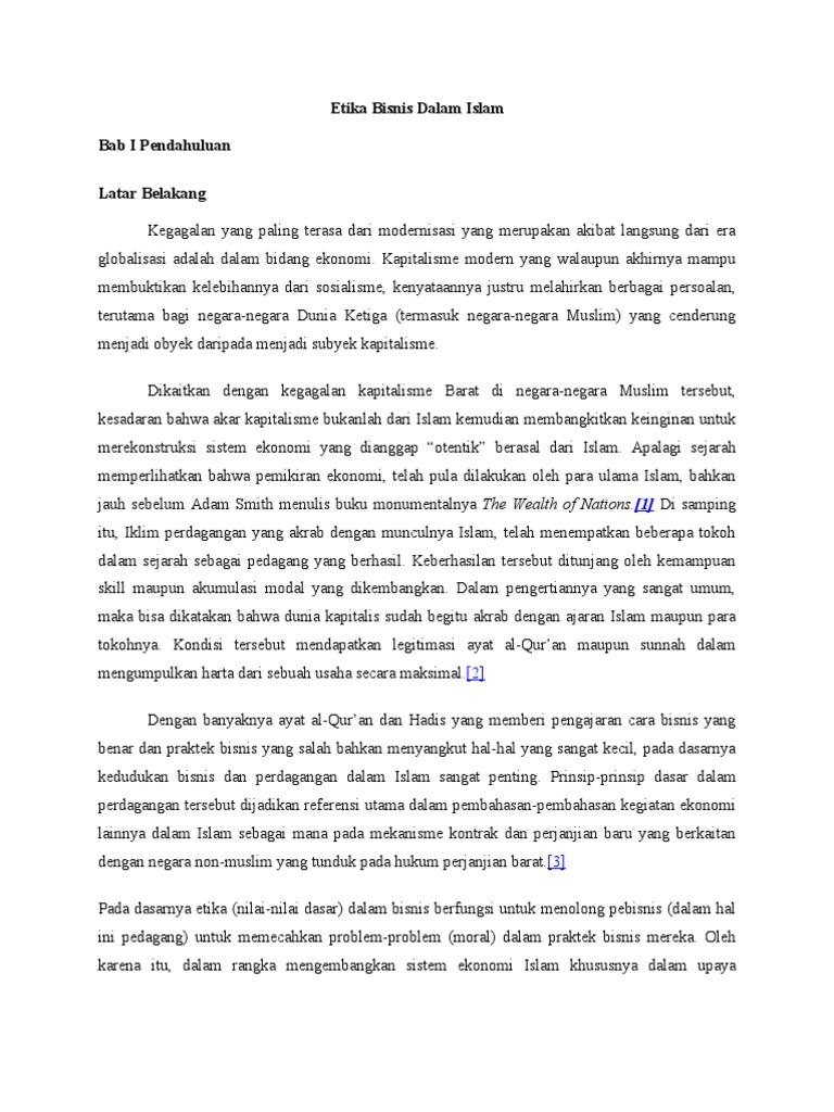 MAKALAH ETIKA BISNIS DALAM ISLAM - Academia.edu Makalah ini kami buat dalam rangka untuk memenuhi tugas mata kuliah Etika Bisnis Islam dan untuk memperdalam pengetahuan dan pemahaman mengenai "Etika Bisnis Dalam Islam". Dengan segala keterbatasan yang ada kami telah berusaha dengan segala daya dan upaya guna menyelesaikan makalah ini.