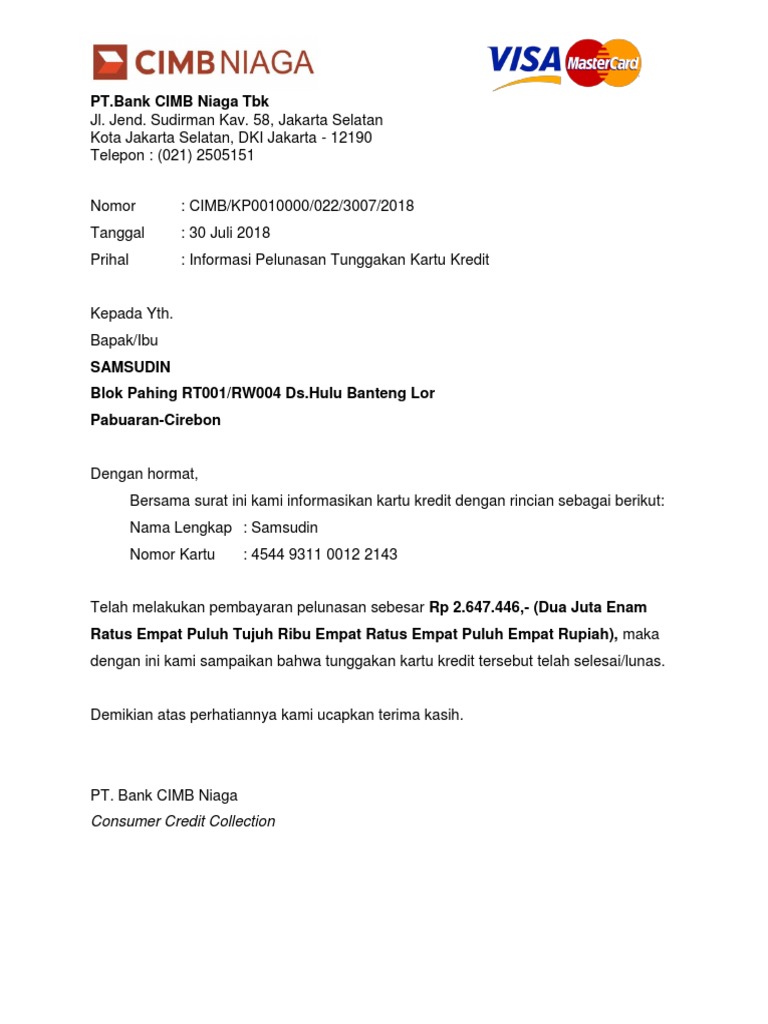 CIMB Niaga KCP Jakarta - Bellagio - Jakarta Selatan, Dki ... Kantor cabang Bank CIMB Niaga di daerah Kota Jakarta Selatan, provinsi Dki Jakarta. Cimb Indonesia memiliki berbagai layanan meliputi pendaftaran akun bank cimb niaga, cimb finance, pembuatan akun cimb clicks atau cimb internet banking untuk keperluan m banking niaga nasabahnya hingga pendaftaran kartu credit cimb niaga. PT. BANK CIMB NIAGA TBK Company Profile | Jakarta Selatan ... BANK CIMB NIAGA TBK of Jakarta Selatan, DKI Jakarta. Get the latest business insights from Dun & Bradstreet. skip to main content We use cookies for marketing and advertising purposes, and to provide the best experience on our website. By continuing to browse the site, you agree to our use of cookies. id.wikipedia.org › wiki › Bank_Oke_IndonesiaBank Oke Indonesia - Wikipedia bahasa Indonesia, ensiklopedia ... Bank adalah salah satu bank yang berdiri sejak 1991 dan berkantor pusat di Jakarta. Sejak berdiri, nama perusahaan awalnya adalah Liman International Bank . Kemudian, bank ini diakuisisi oleh Nio Yantony , bersama berberapa perorangan lainnya yang menguasai lebih dari 70% saham bank ini. Find Us - CIMB Niaga Find Us. Lokasi Kami - Personal 1. Tutup. ATM. Kantor Cabang. Kantor Cabang. Cari lokasi lainnya. Lokasi Kami. Pilih Kategori Main Branch (KC) Digital Lounge (KCP) Sub Branch (KCP) Kiosk (KCP) Syariah Main Branch (KCS) Syariah (KKS) Syariah Sub Branch (KCPS) Weekend Banking ATM (Tarik Tunai) CDM (Setor Tunai) TST (Tarik & Setor Tunai) Pilih ...