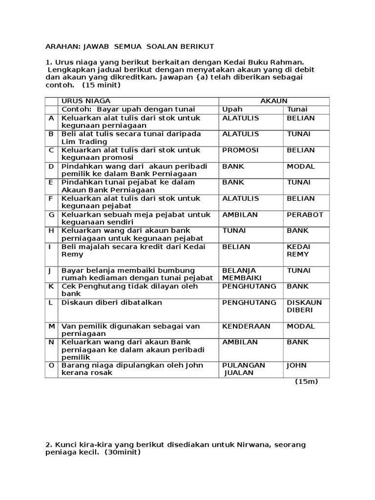 Cara Menentukan Debit dan Kredit dalam Jurnal - Unitysis ... Cara Menentukan Debit dan Kredit dalam Jurnal. Dalam proses akuntansi pembukuan, transaksi yang terjadi dalam usaha menjadi dasar dari pencatatan dalam jurnal. Dalam artikel ini, kita akan membahas langkah demi langkah dalam menentukan posisi debit dan kredit dari setiap akun pada saat Anda hendak mencatat transaksi ke dalam jurnal. Mengenal Perbedaan Debit dan Kredit Dalam Akuntansi Berikut ini ada beberapa contoh debit dan kredit yang terdapat di transaksi umum perusahaan dagang atau yang lainnya, dan sering terjadi pada sebuah bisnis: Menjual barang dagang secara tunai kepada pelanggan, maka akun debitnya adalah Kas, dan akun kreditnya adalah Pendapatan. Contoh Laporan Debit Dan Kredit Lengkap - Semua Contoh Jan 14, 2016 · Contoh Laporan Keuangan Dengan Debit dan Kredit - Neraca Saldo adalah suatu buku yang memiliki isi berupa daftar yang memaparkan kumpulan saldo berasal dari data yang dimiliki oleh setiap rekening dari pihak- pihak terkait. Neraca saldo biasanya memiliki beberapa kolom utama yang digunakan dalam melakukan sautu pendataan. Accounting Central: Pengertian Debit Dan Kredit 1. Meningkatkan nilai dalam akaun-akaun liabiliti, ekuiti dan hasil. 2. Mengurangkan nilai dalam akaun-akaun aset dan belanja. Berikut adalah beberapa contoh catatan debit dan kredit Contoh 1: Belian stok daripada pembekal secara hutang. Debit Akaun Belian - RM 1,000.00 (aset bertambah)