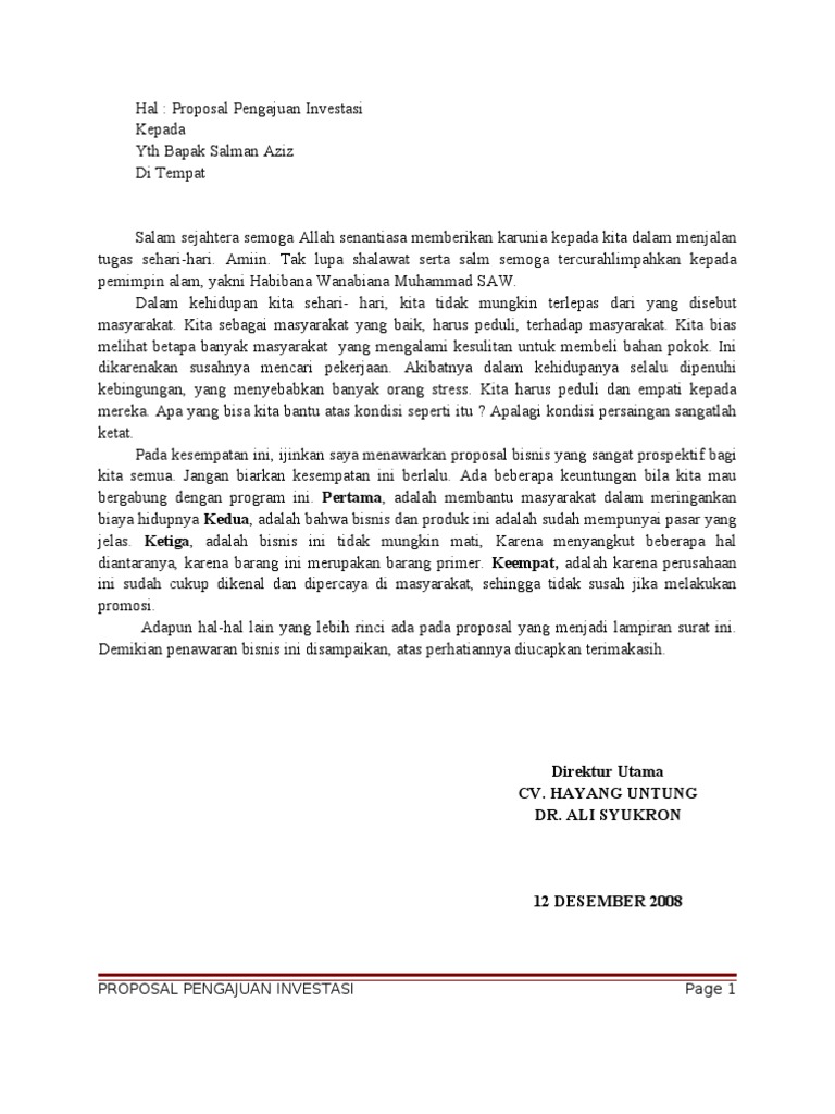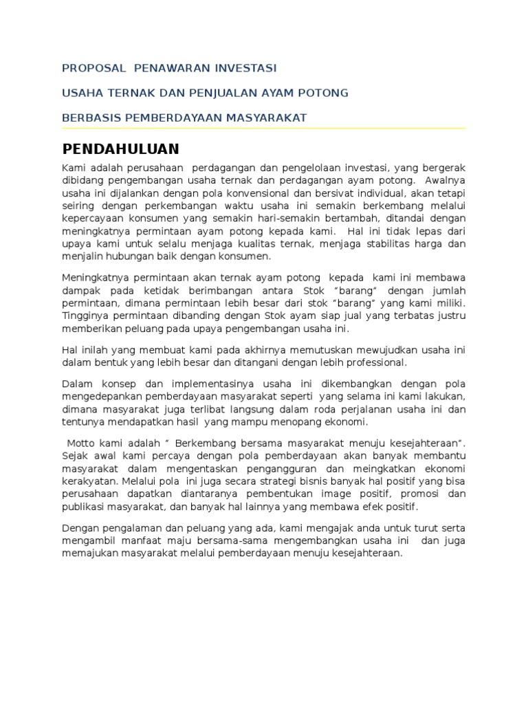 Contoh Proposal Investasi Modal Usaha - Content 8 Contoh Surat Penawaran Kerjasama Investasi Bagi Hasil Dan Lainnya. Doc Tips Membuat Proposal Pengajuan Dana Investor 1 Sampul Muhammad Azka - Academiaedu. Top Pdf Proposal Bantuan Modal Usaha - 123dokcom. Contoh Proposal Usaha Atau Rencana Bisnis.
