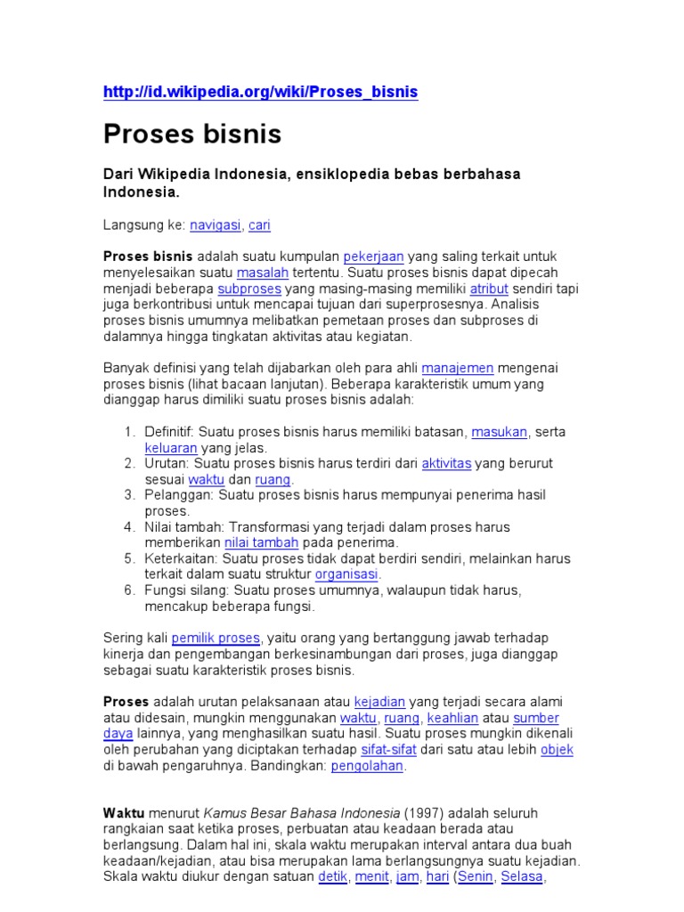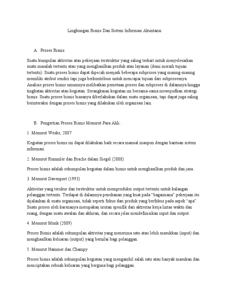 Pengertian Proses Bisnis Menurut Para Ahli Demikianlah pembahasan mengenai Proses Bisnis - Pengertian Menurut Para Ahli, Karakteristik, Fungsi, Klasifikasi, Tahapan, Komponen, Manfaat dan Contoh semoga dengan adanya ulasan tersebut dapat menambah wawasan dan pengetahuan anda semua, terima kasih banyak atas kunjungannya... Proses Bisnis yang Ideal Seperti Ini, Pahami Arti dan Contoh Sedangkan menurut para ahli, proses bisnis merupakan kumpulan aktivitas yang membutuhkan satu atau lebih inputan dan menghasilkan output Penentuan proses bisnis. Jika sudah menganalisis apa yang akan dilakukan maka di tahapan ini akan ditentukan sistem apa yang akan digunakan, berapa...