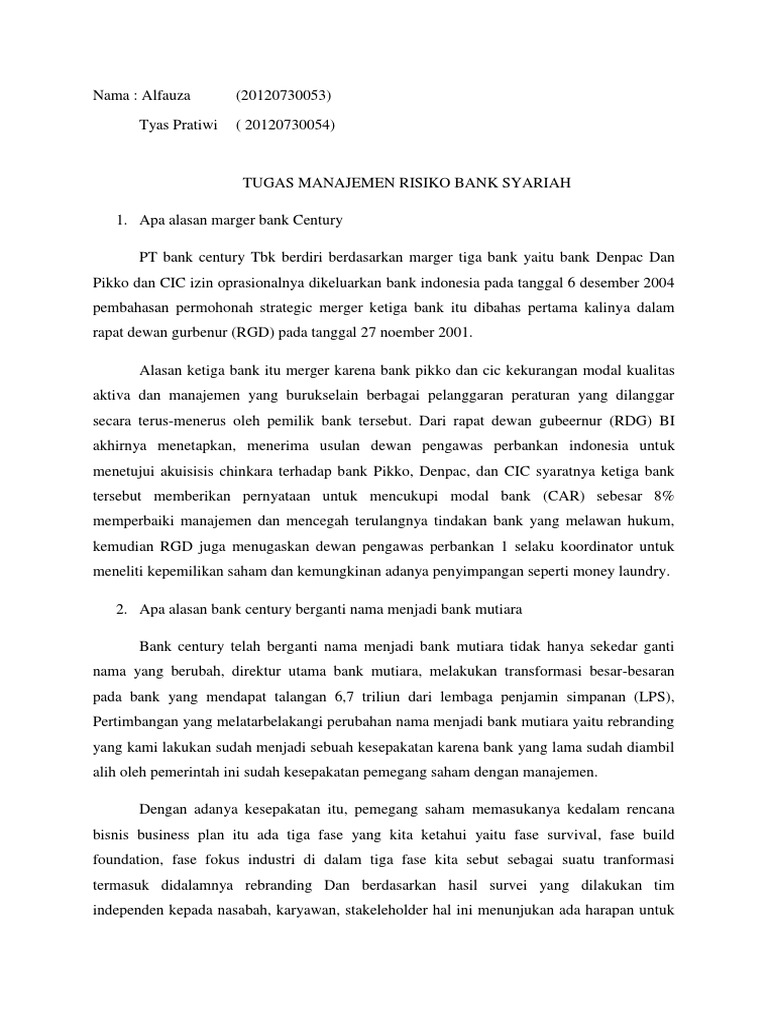 [Ciee yg ganti nama] Mutiara yg mencari kepercayaan - KASKUS Bank Mutiara Ganti Nama Menjadi Bank J Trust Indonesia Mon, 30 Mar 2015 16:51 WIB Kepemilikan mayoritas saham Bank Mutiara dimiliki oleh J Trust Co. Ltd, maka dengan demikian, Bank Mutiara berganti nama menjadi Bank J Trust Indonesia. Rezkiana Nisaputra Jakarta --PT Bank Mutiara, Tbk (BCIC) melaksanakan Rapat Umum Pemegang Saham Luar Biasa (RUPSLB) 2015. Pemilik Berganti, Bank Mutiara Ganti Nama - Finansial ... Pemilik Berganti, Bank Mutiara Ganti Nama Rapat Umum Pemegang Saham PT Bank Mutiara Tbk memutuskan untuk mengganti entitas bank menjadi PT Bank J Trust Indonesia setelah sejak tahun lalu perusahaan investasi asal Jepang itu menguasai saham perseroan. Rivki Maulana - Bisnis.com 30 Maret 2015 | 17:00 WIB Kembali berganti nama. - JIBI Bank ganti nama - SahamOK 13. Bank International Indonesia. dalam proses perubahan nama menjadi "Bank Maybank Indonesia". 14. Bank Maybank Syariah Indonesia. dahulu bernama "Bank Maybank Indocorp". 15. Bank Mutiara. sebelum tanggal 16 September 2009 bernama "Bank Century"/"Bank CIC", penyertaan saham sementara oleh Pemerintah Indonesia melalui LPS.