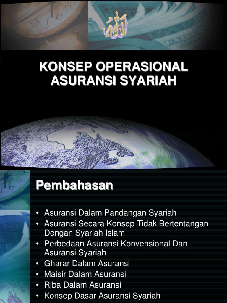Asuransi Jiwa menurut pandangan Islam (Konsep asuransi ) Pandangan fuqaha (ahli fiqih), dibidang syani'ah merupakan pencerminan dan pandangan Islam mengenai soal-soal kehidupan manusia, baik dibidang ibadah maupun muamalah. Masalah asuransi, yang merupakan suatu bentuk muamalah dan dilemparkan ditengah-tengah Dunia Islam sebagai akibat dari interaksinya dengan dunia barat, telah mengundang respon ...