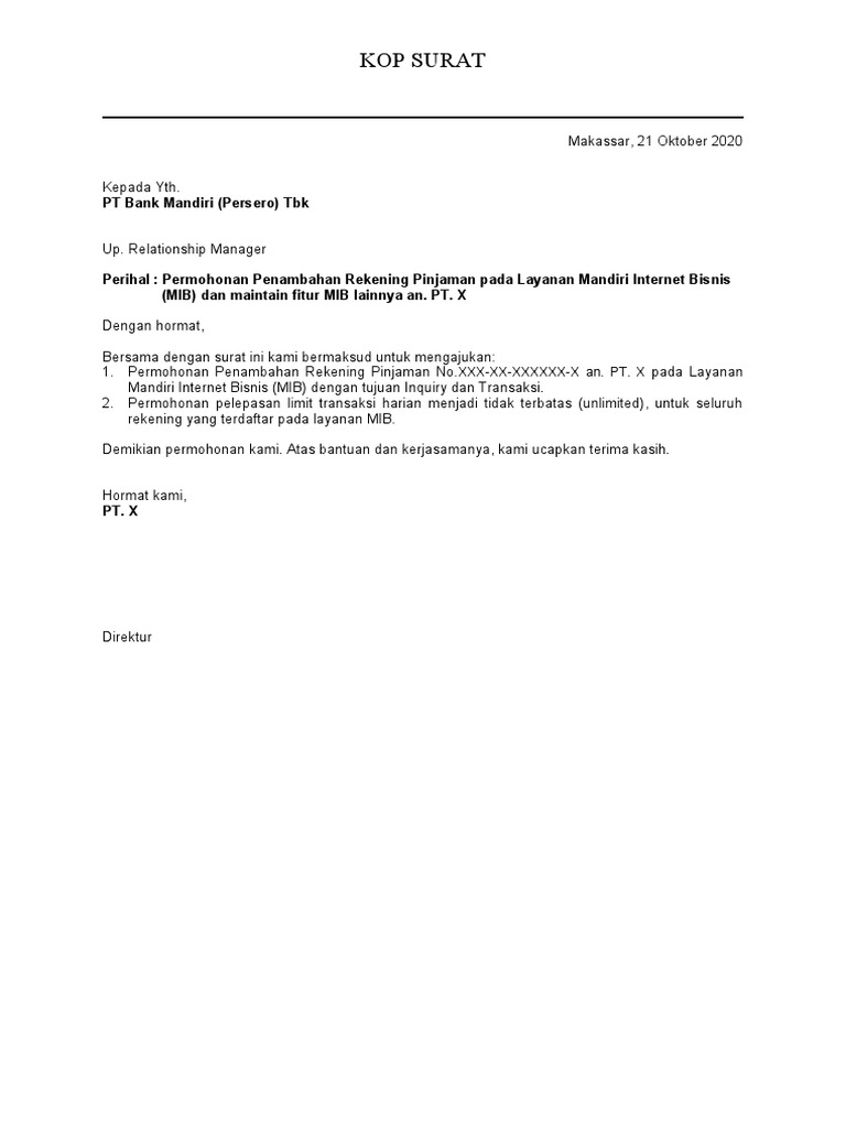 Cara Transfer Mandiri Internet Bisnis ( Mib ) | Cara ... Cara Melakukan Transfer dengan Menggunakan Mandiri Internet Bisnis,semoga dapat membantu menjawab pertanyaan dari bapak ibu yang ingin melakukan transfer den... Bank Mandiri Sorry, your transaction could not be processed : For status of Financial transaction, please see on Transaction Status menu Mandiri Internet Bisnis: Syarat, Cara Daftar hingga Transfer Cara login Mandiri Internet Bisnis Kunjungi laman Login dengan cara mengisi Company ID, User ID dan password yang telah Anda terima saat proses pendaftaran Pilih bahasa yang ingin digunakan Terakhir, klik "Login". Lihat Foto Cara daftar layanan Mandiri Internet Bisnis serta persyaratannya (PIXABAY) Mandiri Internet Bisnis mandiri internet bisnis adalah layanan e-banking untuk melakukan transaksi finansial dan non finansial dengan aplikasi internet banking yang diperuntukkan bagi nasabah bisnis dari segmen perorangan dan perusahaan khususnya kategori perusahaan kecil dan menengah.fitur yang terdapat di dalam layanan mandiri internet bisnis antara lain informasi …