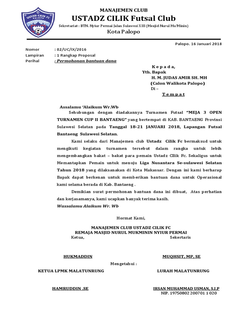 Contoh Surat Permohonan Dana Ke Donatur | Unit.my.id Contoh Surat Permohonan Bantuan Dana Sponsor. Surat Permohonan Bantuan Dana Dalam pelaksanaan suatu acara atau kegiatan tertentu ada beberapa faktor yang mempengaruhi kelancaran pelaksanaan acara atau kegiatan tersebut. Batang 25 April 2016. Sedangkan permohonan permintaan dana pada umumnya dilakukan setiap. Ustdz Ropani DS Sekretaris.