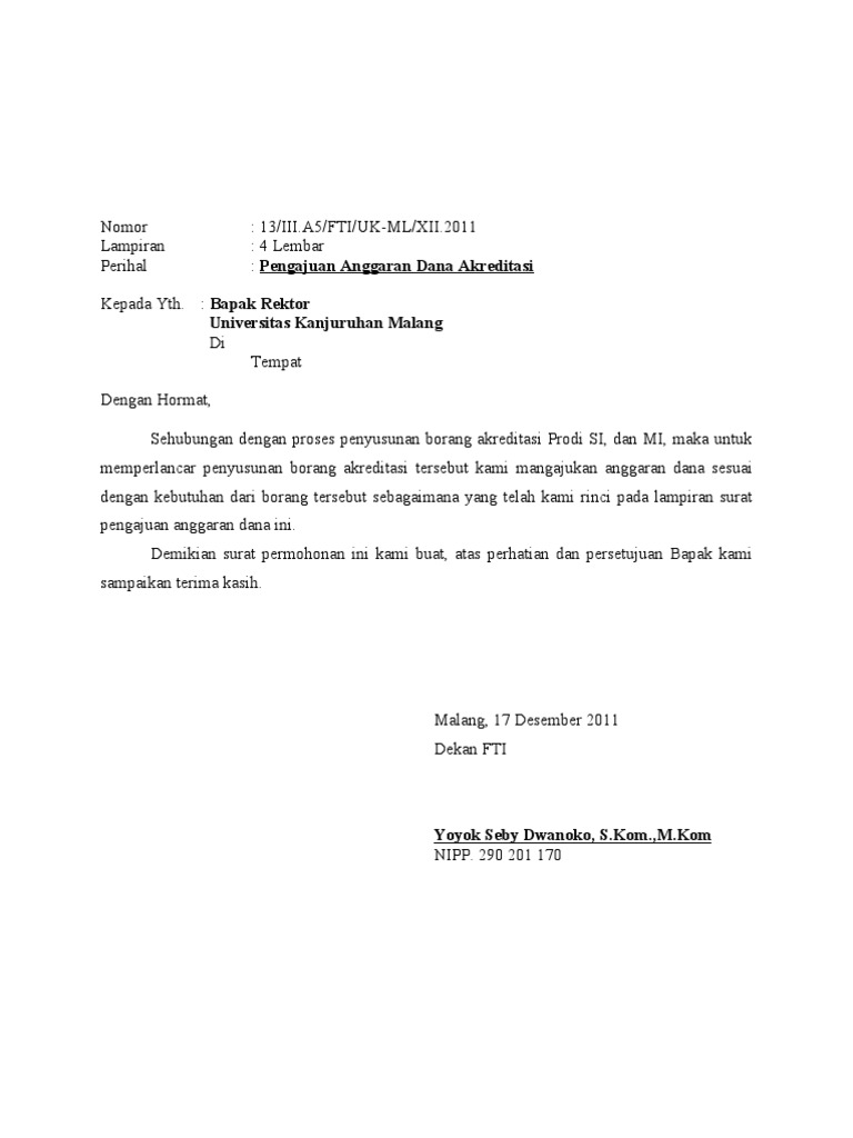 kumpulanjurnal.download › p › download-filekumpulanjurnal.download kumpulanjurnal.download √ 8+ Contoh Surat Pengajuan Yang Baik dan Benar Contoh Surat Pengajuan Dana. Download Contoh Surat Pengajuan Dana.docx. Itu dia penjelasan mengenai surat pengajuan beserta referensi contoh suratnya. Meski dapat diinformasikan secara lisan, namun untuk dunia bisnis maupun instansi tertentu komunikasi menggunakan surat jauh lebih efektif. Selain sebagai bentuk etika bisnis, surat juga dapat ... lezgetreal.com › contoh-surat-permohonan10+ Contoh Surat Permohonan Pengembalian Kelebihan Transfer Oct 21, 2021 · Beberapa Contoh Surat Permohonan Pengembalian Kelebihan Transfer yang Benar. Apabila belum juga paham sekalipun mengetahui unsur-unsurnya, berikut ini tersedia contoh surat permohonan pengembalian kelebihan transfer yang benar. Pastikan untuk memperhatikan setiap kalimat yang diuraikan agar ketika menulis sendiri tidak lagi kebingungan. 66 Contoh Surat Pengajuan Dana yang Benar - Contohsurat 66 Contoh Surat Pengajuan Dana yang Benar Surat pengajuan dana merupakan salah satu contoh surat resmi yang berfungsi sebagai surat untuk mengajukan bantuan dana secara tertulis dari suatu instansi ataupun organisasi kepada orang banyak atau umum baik di dalam ruang lingkup tertentu atau masyarakat luas.